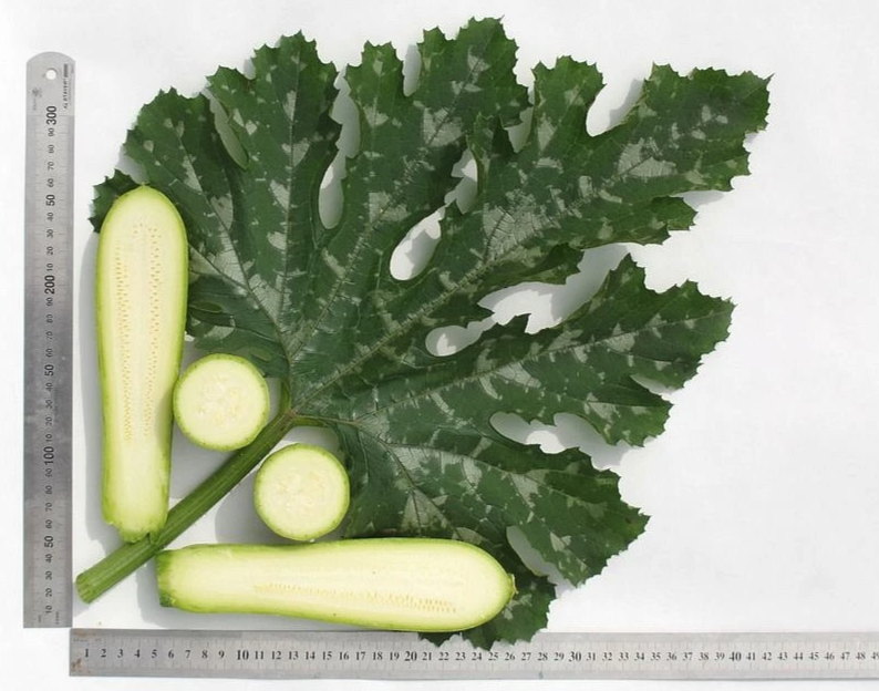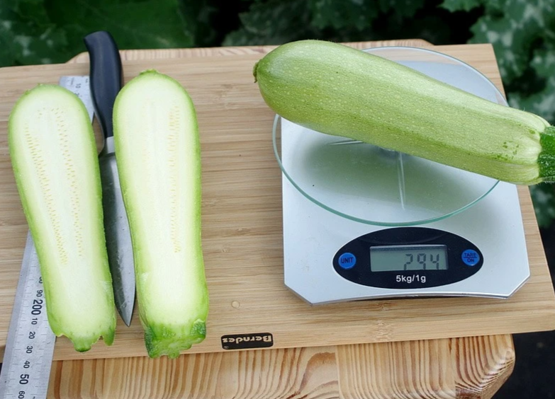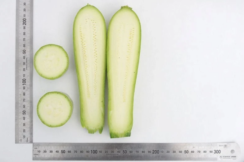 От всходов до первого сбора — около 40 дней. Растение кустового типа, компактное. Междоузлия очень короткие. Плоды цилиндрической формы, однотипные по форме и размеру. Окраска плодов бледно-зелёного цвета. В технической спелости длина кабачков около 20 см, масса 0,5-0,7 кг. Мякоть белая, очень нежной консистенции, отличного вкуса. Плоды могут храниться до 3 месяцев.