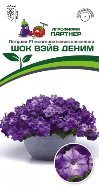 Главная / Интернет-магазин / Семена Партнер / Цветочные культуры / Петуния / Партнер Петуния F1 серия ШОК ВЭЙВ ДЕНИМ/ многоцветковая каскадная^(5шт в амп)