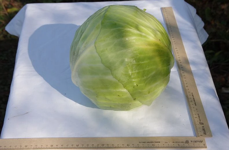 Очень популярный позднеспелый гибрид белокочанной капусты. От всходов до сбора урожая проходит 150-160 дней. Растение компактное с полуприподнятой розеткой темно-зеленых листьев с сильным восковым налетом. Кочан среднего размера, массой 3,5-4,5 кг, округлой формы, очень плотный, на разрезе белый.