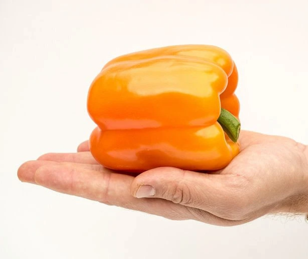 Плоды крупные, массой 200-240 г, кубовидной формы, в биологической спелости глянцевые и приобретают ярко-оранжевый цвет.