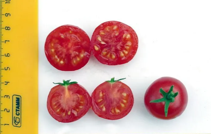Скороспелый детерминантный сорт томата. От всходов до начала плодоношения проходит 80-85 дней. Растение супердетерминантное, компактное, высотой 30-40 см, штамбовой формы, среднеоблиственное, не требующее пасынкования. Плоды округлой формы, красного цвета, гладкие, массой 20-30 г, сладкие и ароматные. Рекомендованы для свежего потребления.