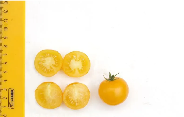 Плоды округлой формы, желтого цвета, гладкие, массой 20-30 г, сладкие и ароматные. Рекомендованы для свежего потребления. Сорт ценится за декоративность и возможность выращивания в контейнерах в домашних условиях, в том числе в зимнее время в светокультуре.