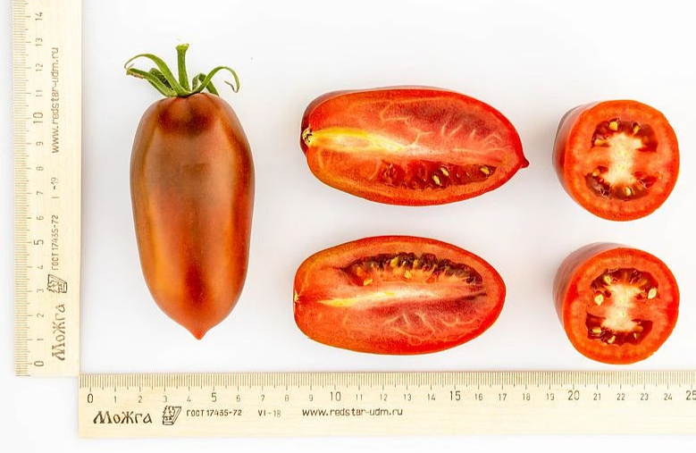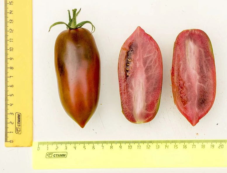 От всходов до созревания первых плодов 95-100 дней. Первое соцветие закладывается над 8-9 листом, последующие через 2-3. Плоды тёмно-бурой окраски, массой 100-120 г, цилиндрической формы, 2-3-х камерные, с толстыми «стенками».