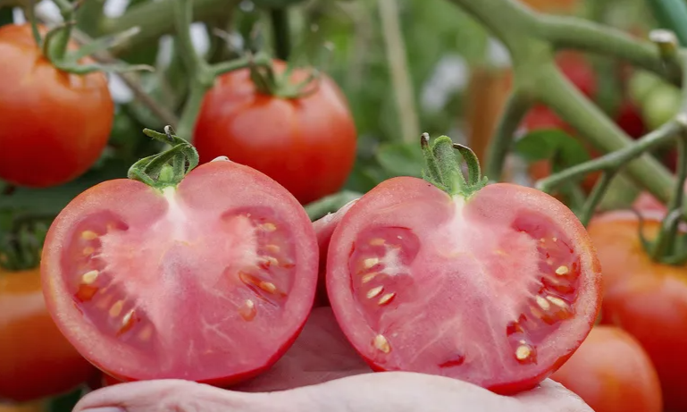 Растение высотой около 120 см, слабооблиственное. Первое соцветие закладывается над 7 листом, последующие – через 1 лист. В простых компактных кистях формируется 7-9 округлых гладких плодов красного цвета, массой 100-180 г. Томаты плотные, мясистые, очень вкусные, прекрасно подходят для свежего потребления и для приготовления соков, соусов и паст.