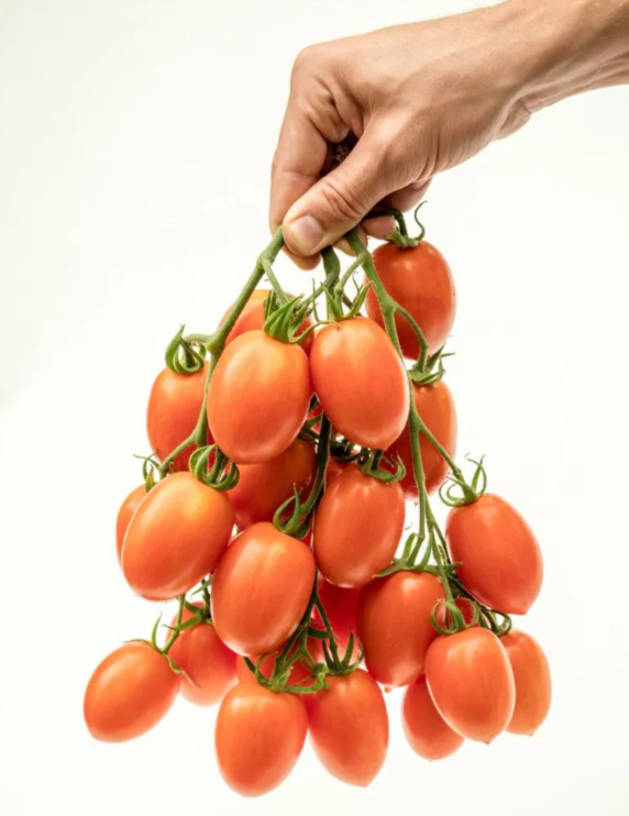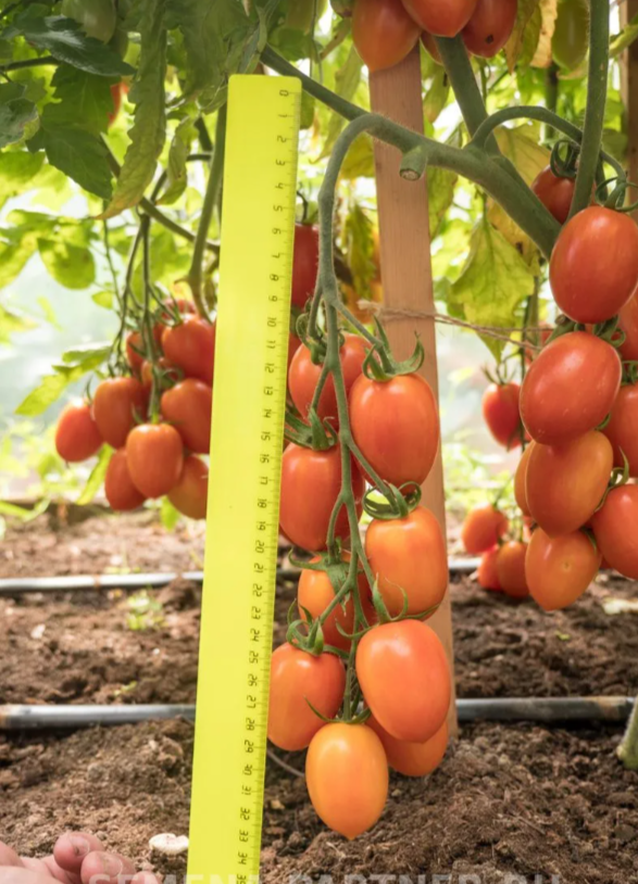 Первое соцветие закладывается над 6 листом, последующие – через 2 листа. В простых и полусложных кистях формируется по 7-12 плодов сливовидной формы с маленьким носиком. Томаты небольшие, массой около 50 г, золотисто-оранжевого цвета с легкими продольными алыми штрихами, нежной консистенции, ароматные, с ярко выраженной сладостью во вкусе и легкой приятной кислинкой. Хороши для употребления в свежем виде, цельноплодного консервирования и вяления.