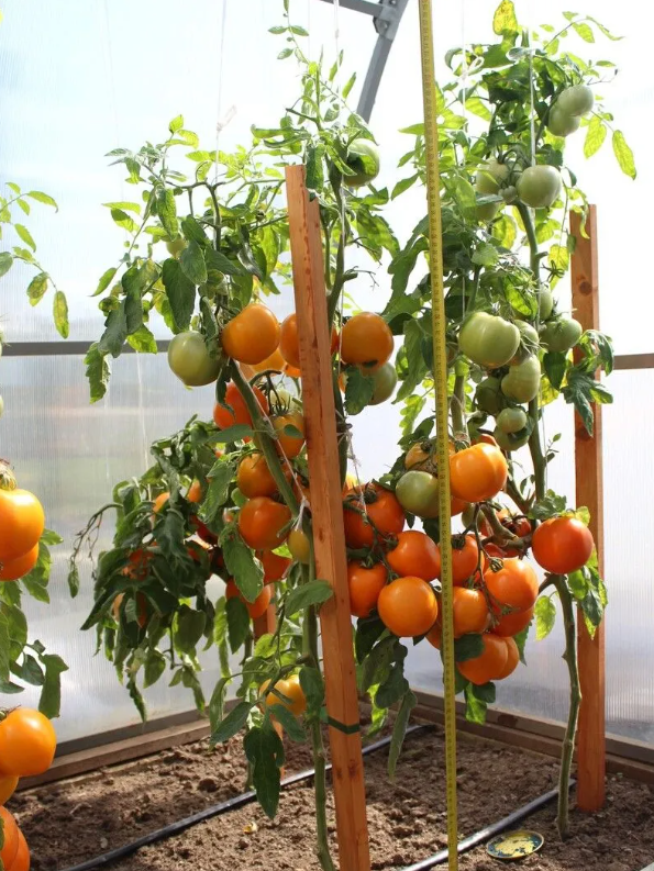 Первое соцветие закладывается над 6-м листом, последующие - через 1-2 листа. В простых кистях формируется по 5-6 сладких, желто-оранжевых, округлых плодов массой по 200-220 г. Благодаря низкому содержанию кислот, высокому содержанию каротина и нежной мякоти, томаты рекомендованы в качестве диетического питания. Плоды плотные, лежкие и транспортабельные.