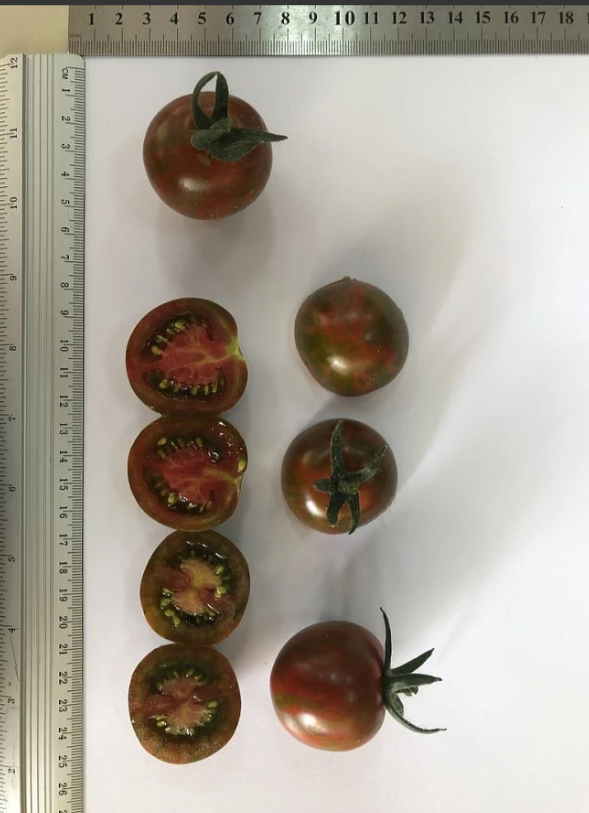 Томаты красно-коричневого цвета с темно-зелеными полосами, вкусные, сладкие, идеальны для свежего потребления, консервирования и вяления. Гибрид подходит для снятия урожая целыми кистями.