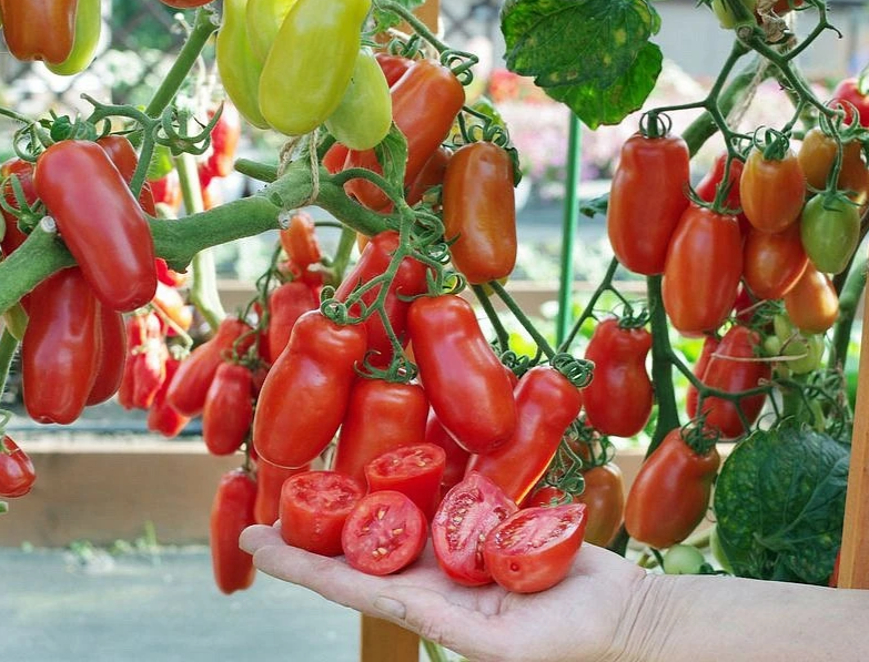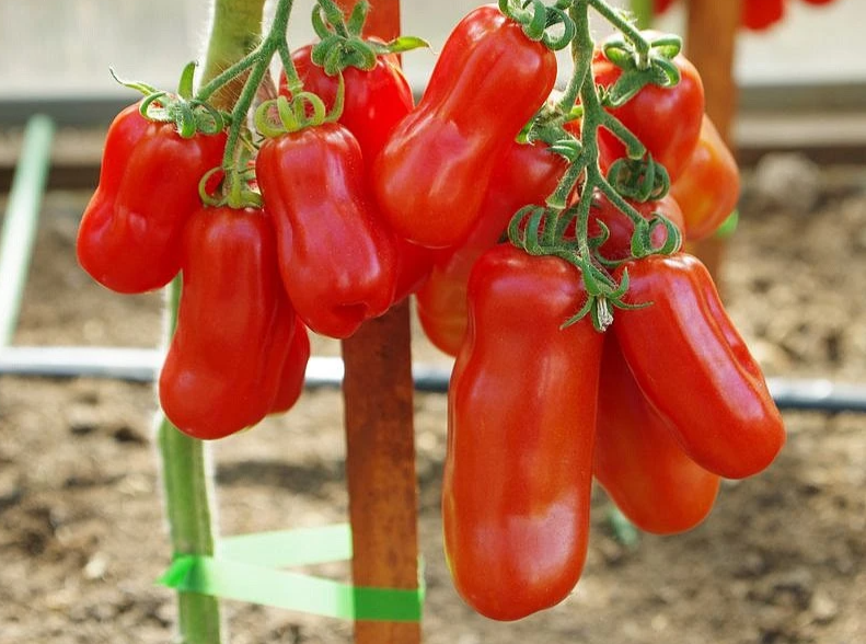 В плодоношение вступает через 100-105 дней от всходов. В простых кистях формируется по 5-6 плодов красного цвета. Форма томатов цилиндрическая, сильно вытянутая, тупоконечная, с небольшим углублением на носике. Томаты плотные, мясистые, классического вкуса, массой до 140 г, идеальны для потребления в свежем виде и консервирования.