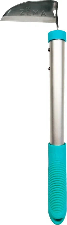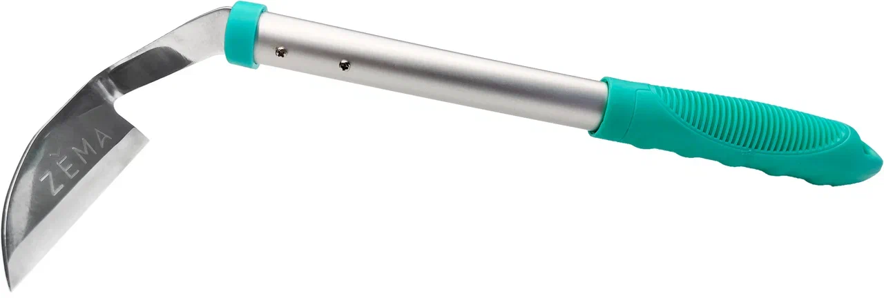 Этой тяпкой очень легко и удобно работать, благодаря легкой, эргономичной алюминиевой ручке с силиконовой накладкой, которая не скользит в руке, и косой форме лезвия.
