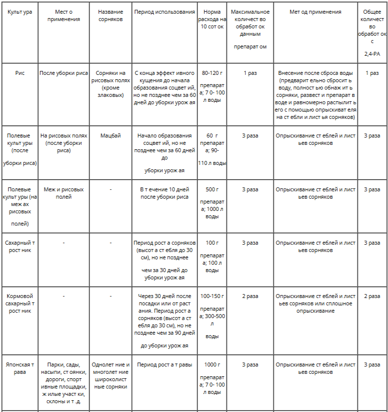Это гормональный, абсорбируемый и транслоцируемый гербицид, который всасывается через стебли, листья или корни сорняков и распространяется по всему растению, вызывая физиологические повреждения и приводя к гибели сорняков. Действие этого средства носит явно избирательный характер; он очень эффективен против широколиственных сорняков, но неэффективен против злаковых сорняков.